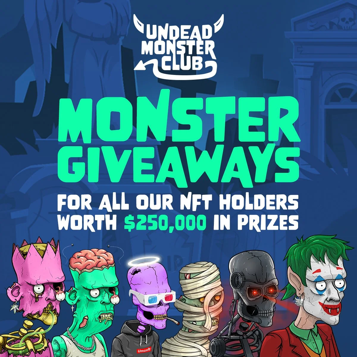 The Undead Monster Club is an NFT project with 8,888 unique monster NFTs on the Ethereum blockchain. I created all of the branding and design for the project, as well as all of the art for the NFTs.